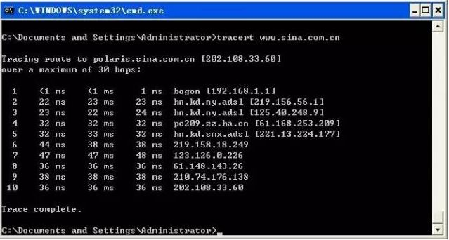 此外,tracert命令还可以用来查看网络在连接站点时经过的步骤或采取哪种路线,如果是网络出现故障,就可以通过这条命令查看出现问题的位置。