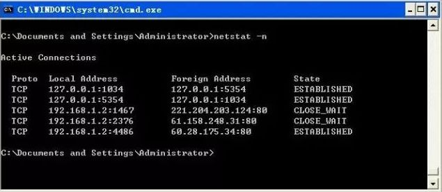 netstat命令能够显示活动的TCP连接、计算机侦听的端口、以太网统计信息、IP路由表、IPv4统计信息(对于IP、ICMP、TCP和UDP协议)以及IPv6统计信息(对于IPv6、ICMPv6、通过IPv6的TCP以及UDP协议)。使用时如果不带参数,netstat显示活动的TCP连接。