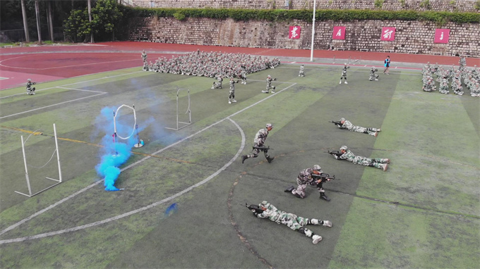 曾校长表示,通过14天的军训,同学们的精神面貌发生了可喜的变化,军训不仅增强了同学们的身体素质,让同学们学到了基本的国防知识、军事知识和技能,而且加强了爱党,爱国,爱军的意识,强化了国防观念和报效祖国的责任感,培养了集体主义思想和艰苦奋斗、吃苦耐劳、团结友爱的精神。