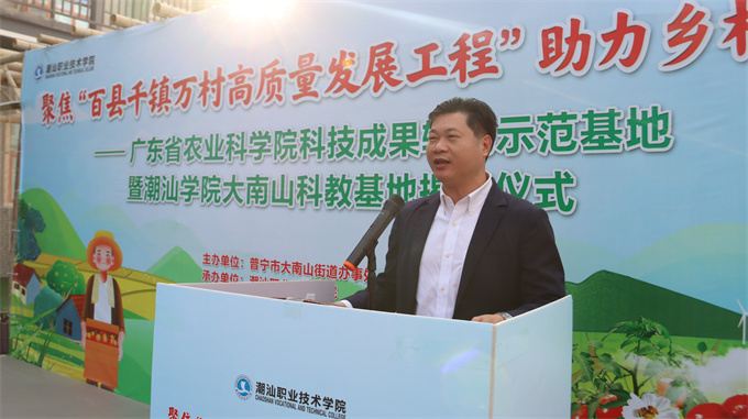 12月29日下午,潮汕职业技术学院、普宁市大南山街道和广东裕业农业发展有限公司举行广东省农业科学院科技成果转化示范基地暨潮汕学院大南山科教基地揭牌仪式。