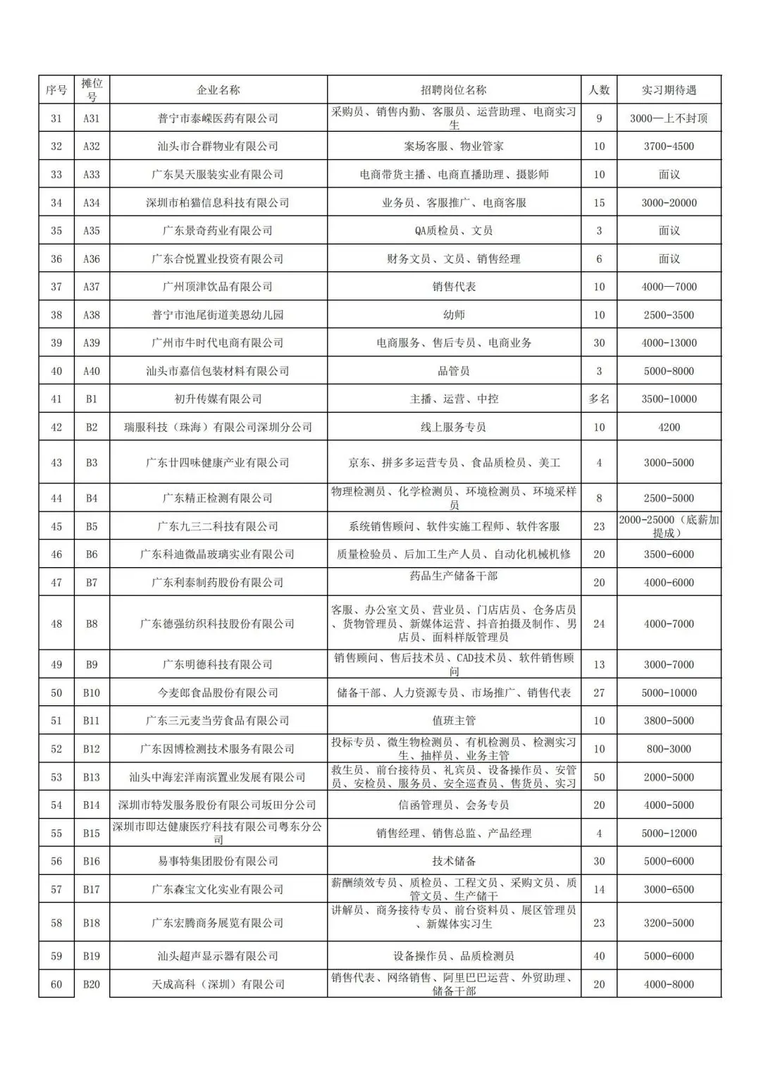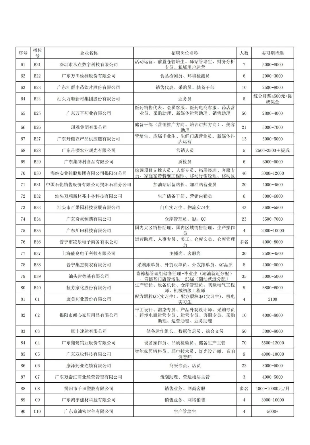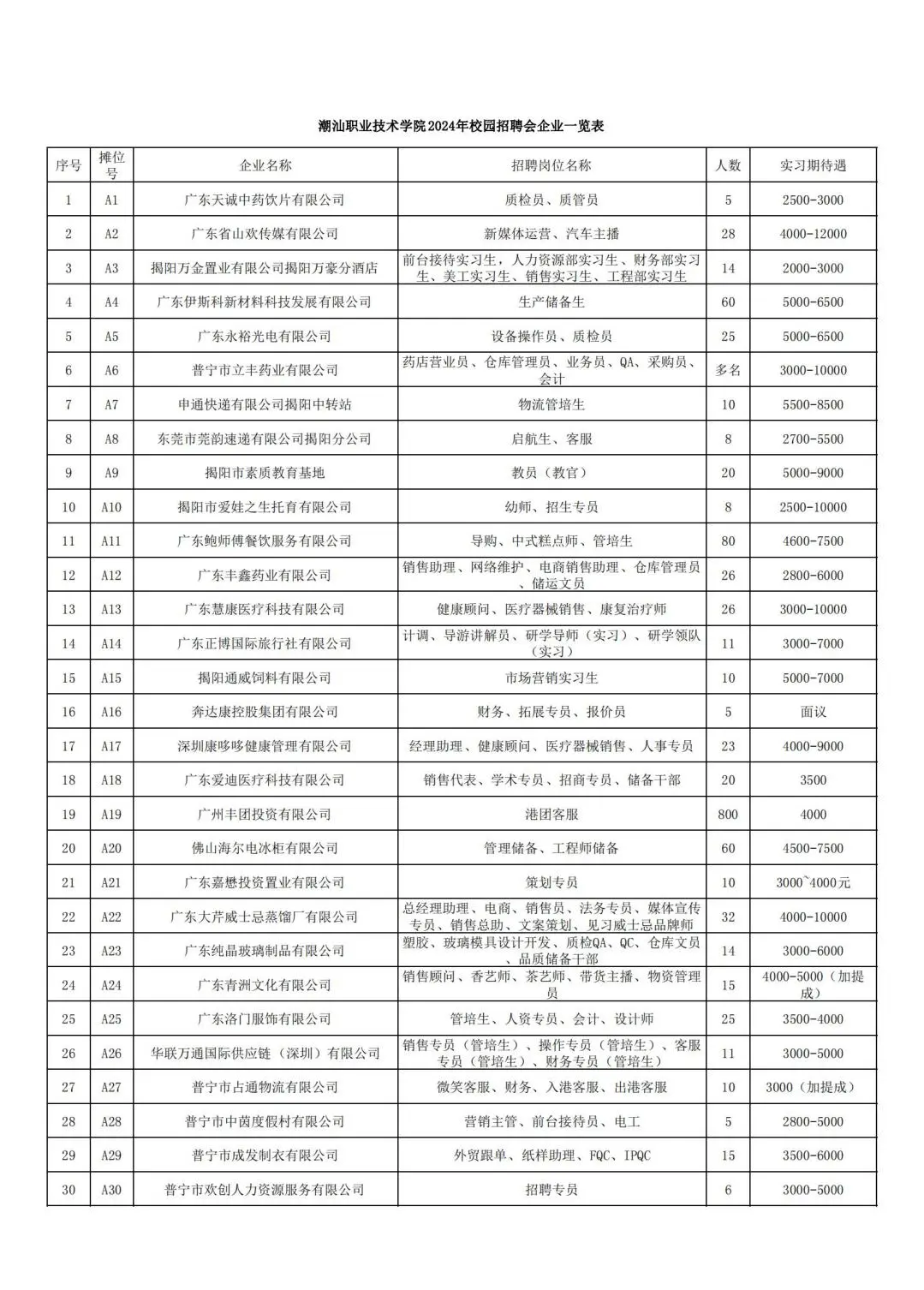 本次招聘会企业信息一览表