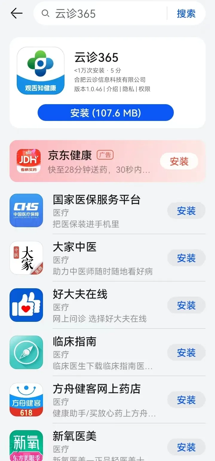从应用市场中下载安装APP“云诊365”