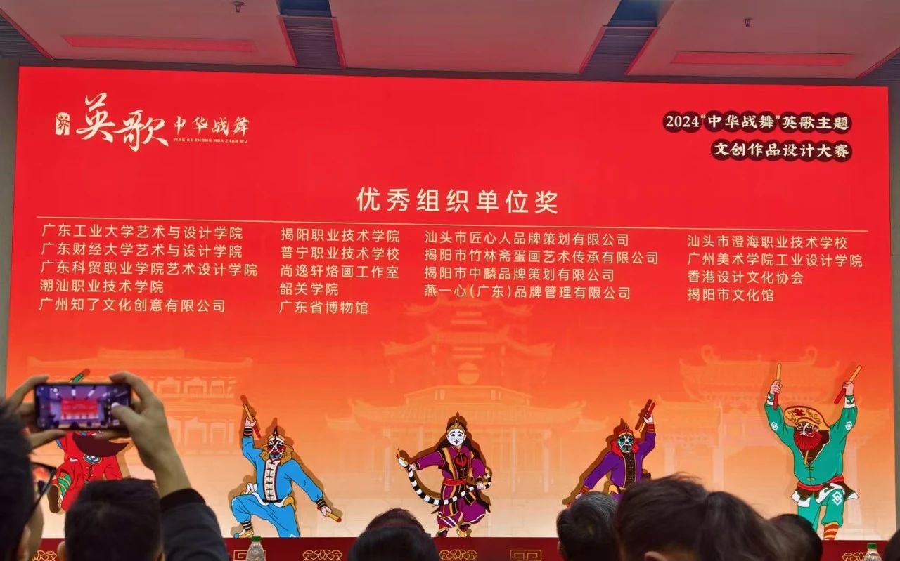 近日,由广东省文化和旅游厅指导,揭阳市文化广电旅游体育局、粤港澳大湾区(广东)文创联盟主办的“中华战舞”英歌主题文创作品设计大赛颁奖仪式暨成果展在广州美术学院(大学城校区)成功举行。