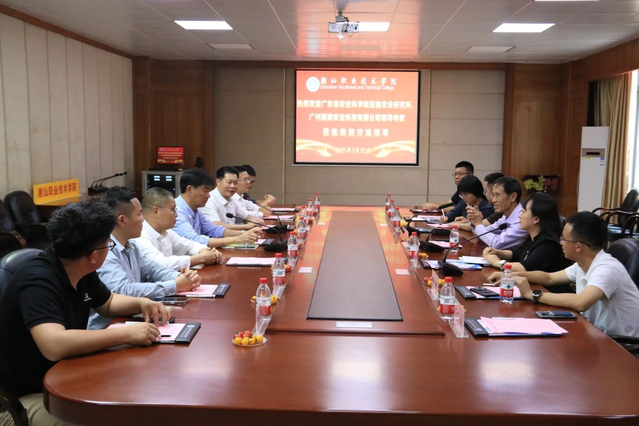 3月25日,广东省农业科学院设施农业研究所专家组与广州蔬美农业科技有限公司代表一行到访潮汕职业技术学院,受到学校校长曾向昌、党委书记李育华、财务总监罗文坤、校长助理、乡村振兴产业学院院长刘江洪的热情接待,双方在会议室就现代农业技术研发、产教融合及基地建设等问题展开深度交流。