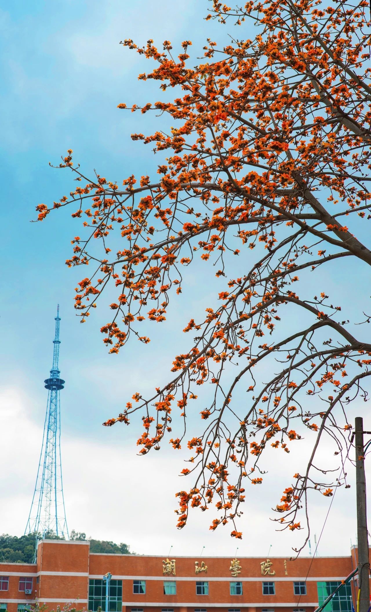 当校门前的木棉花缀满枝头
