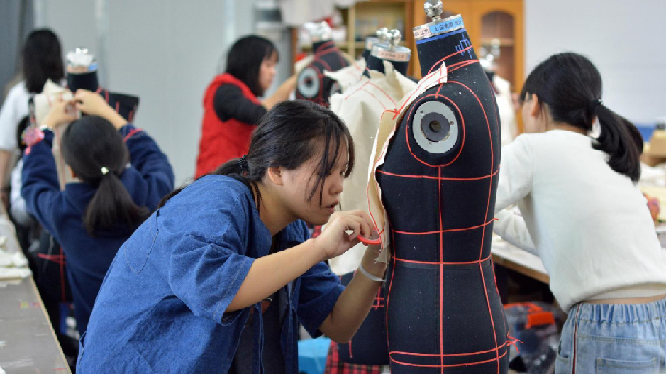 在服装实训室的针线穿梭中