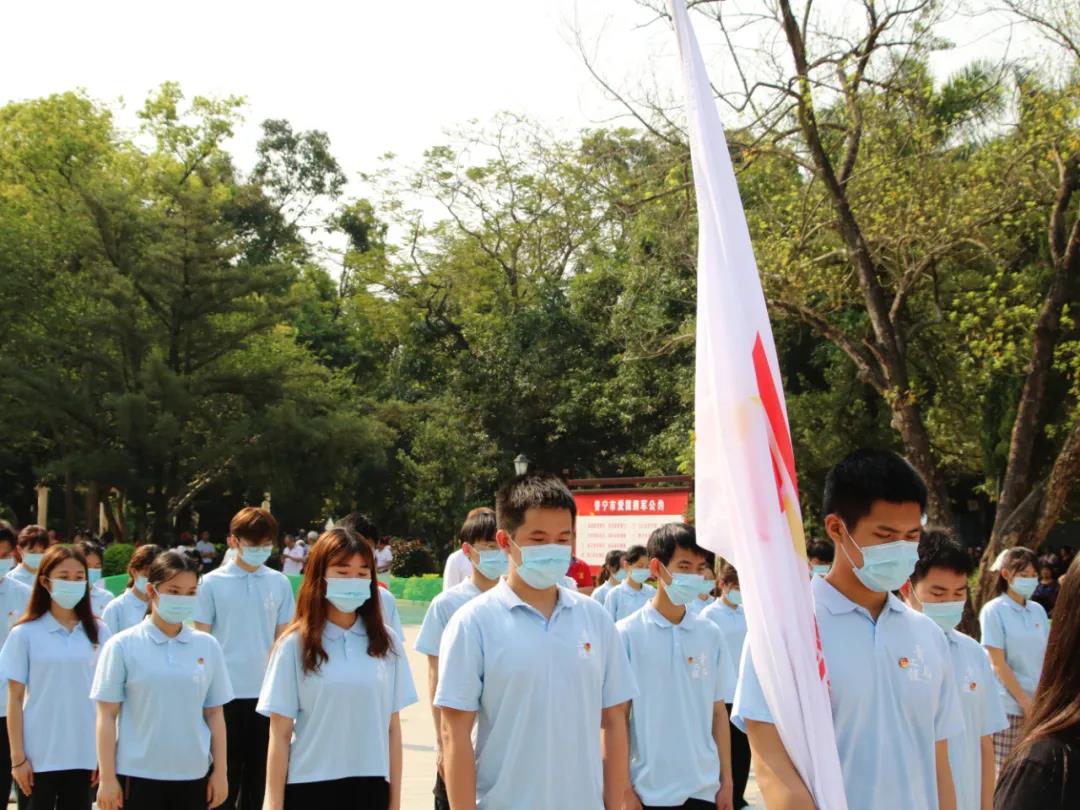 时至清明,2021年4月2日上午,校团委组织第三期青马班学员和国旗护卫队前往普宁流沙人民公园革命烈士英雄纪念碑前,祭奠革命先烈。团委副书记、团校副校长陈楠,学生党建工作中心指导老师谢冰娜,设计学院团总支书记谢穗敏,工商学院团总支书记陈金辉,创业